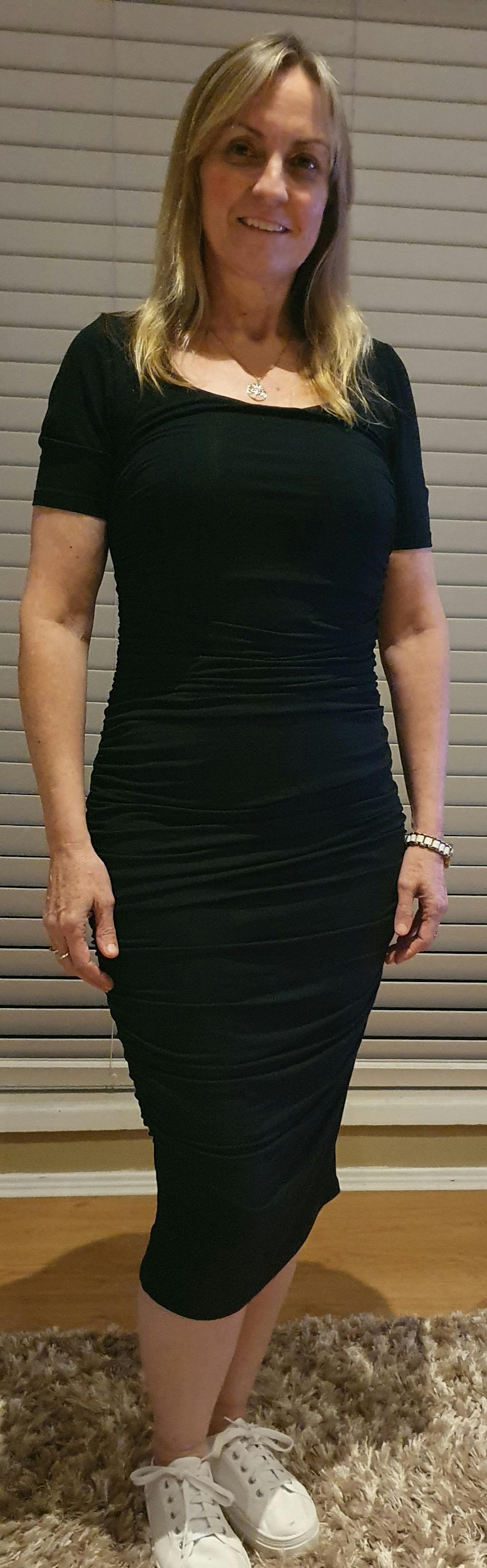 Melissa (photo one) is a size 14 and is wearing a 14. She is 160cm tall